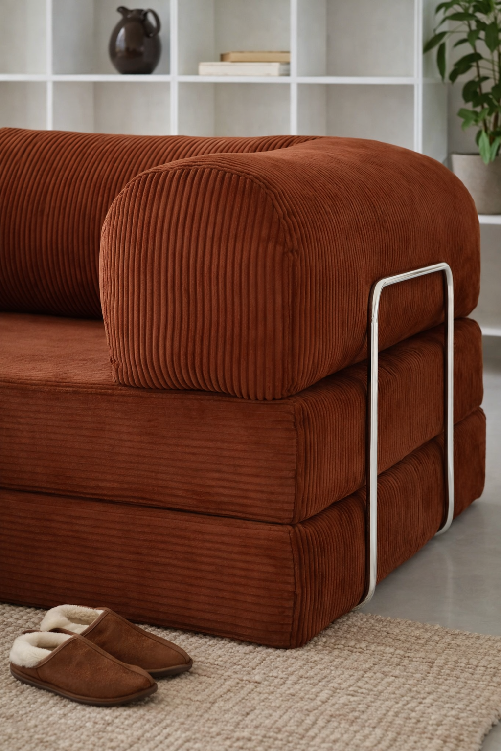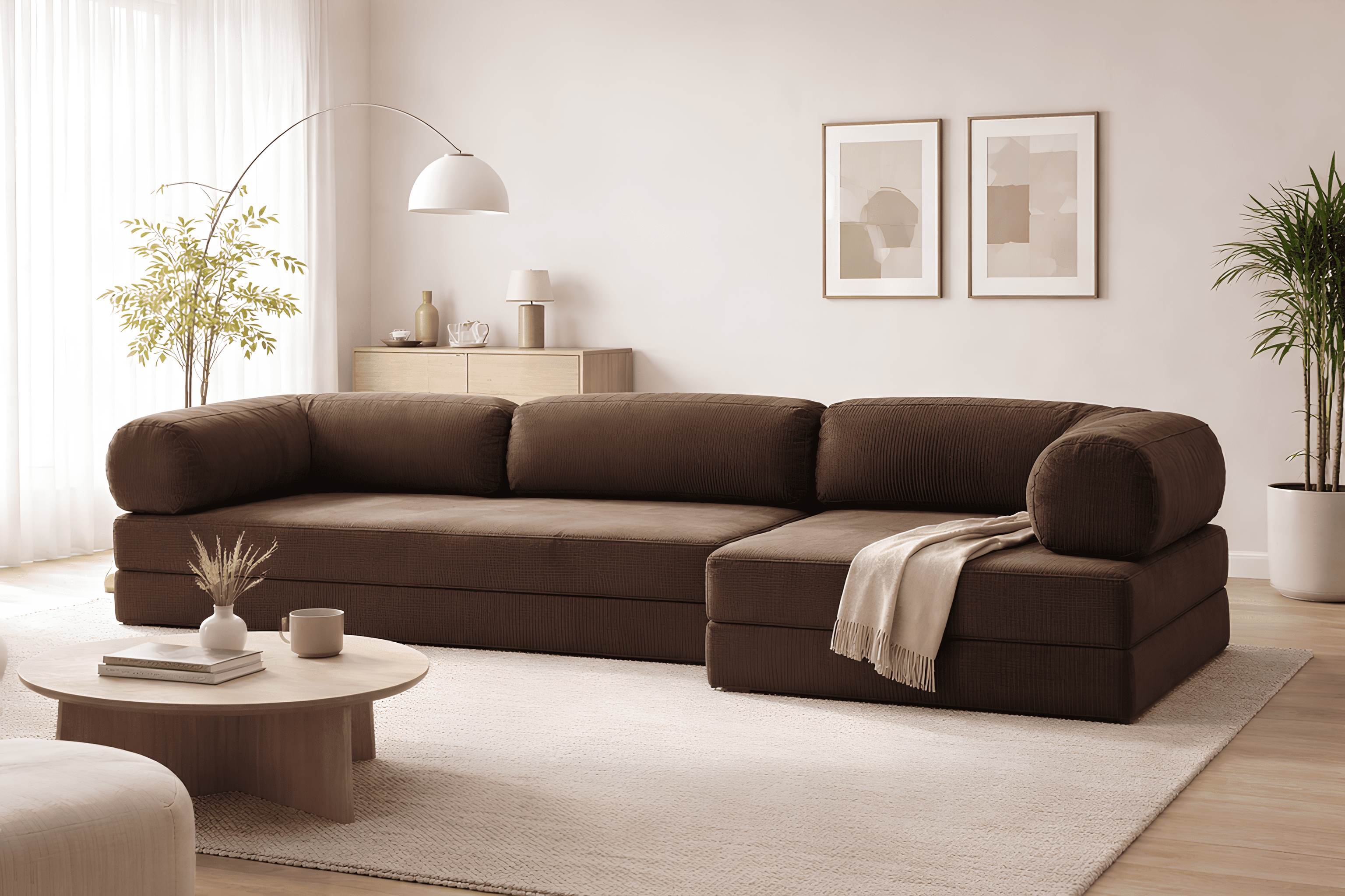 Son toucher côtelé apporte une sensation enveloppante, tandis que sa structure dense assure un maintien durable, jour après jour.